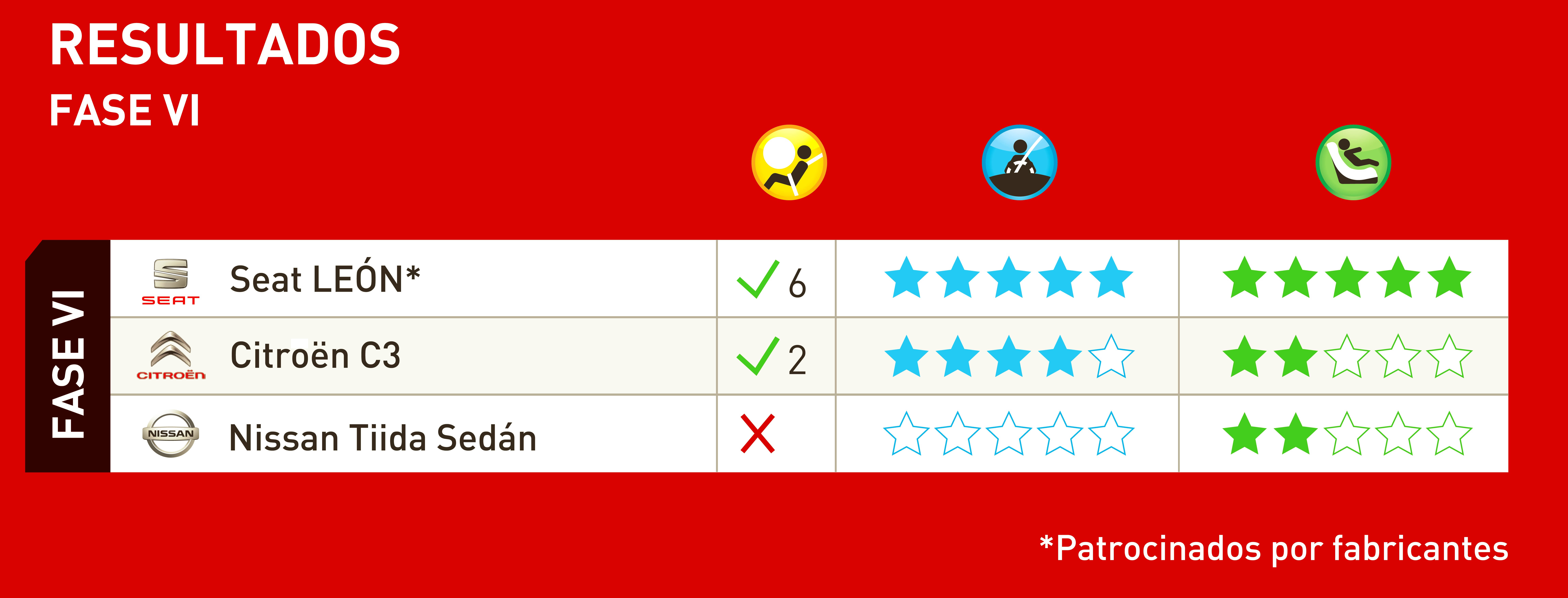 Seat León alcanza cinco estrellas para niños, Citroën C3 obtiene rendimiento aceptable y Nissan reacciona positivamente
